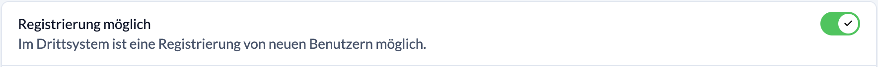 Öffnest du anschließend durch Anklicken den neu eingetragenen OAuth-Server, kannst du zusätzlich noch über die Schaltfäche Registrierung möglich aktivieren, dass im Drittsystem eine Registrierung von neuen Benutzern möglich ist.