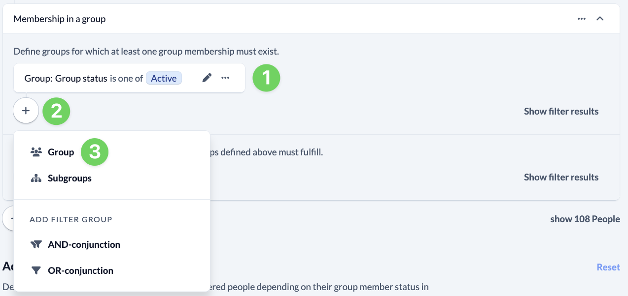 Click on Membership in a group (6) to create a new filter.
