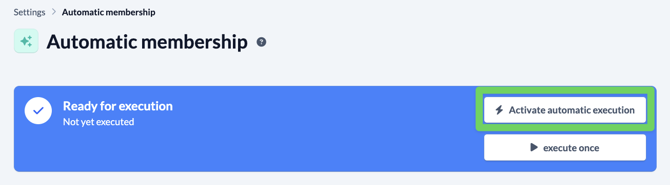 Once the person filter and the actions have been set correctly, activate Automatic membership at the top of the page and set it to run automatically. This will ensure that your group remains up to date when changes are made.
