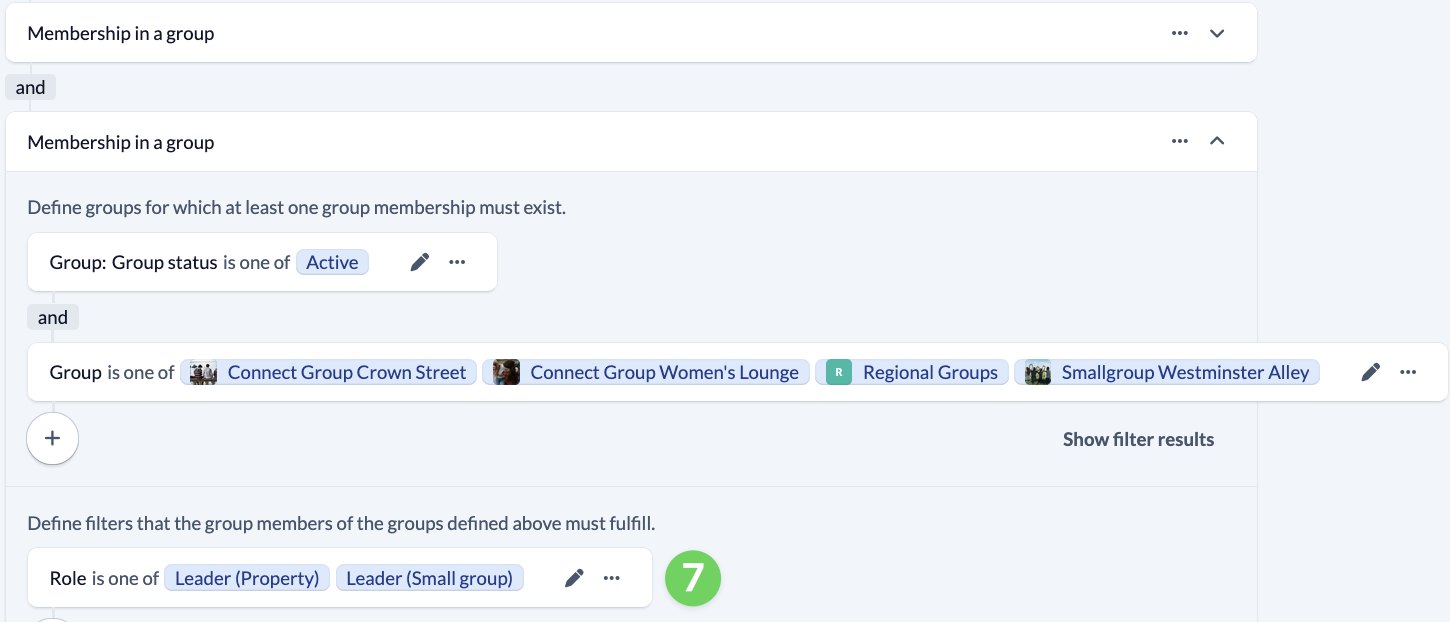 Then click on the plus (5) under Define filter... and select Group membership (6).