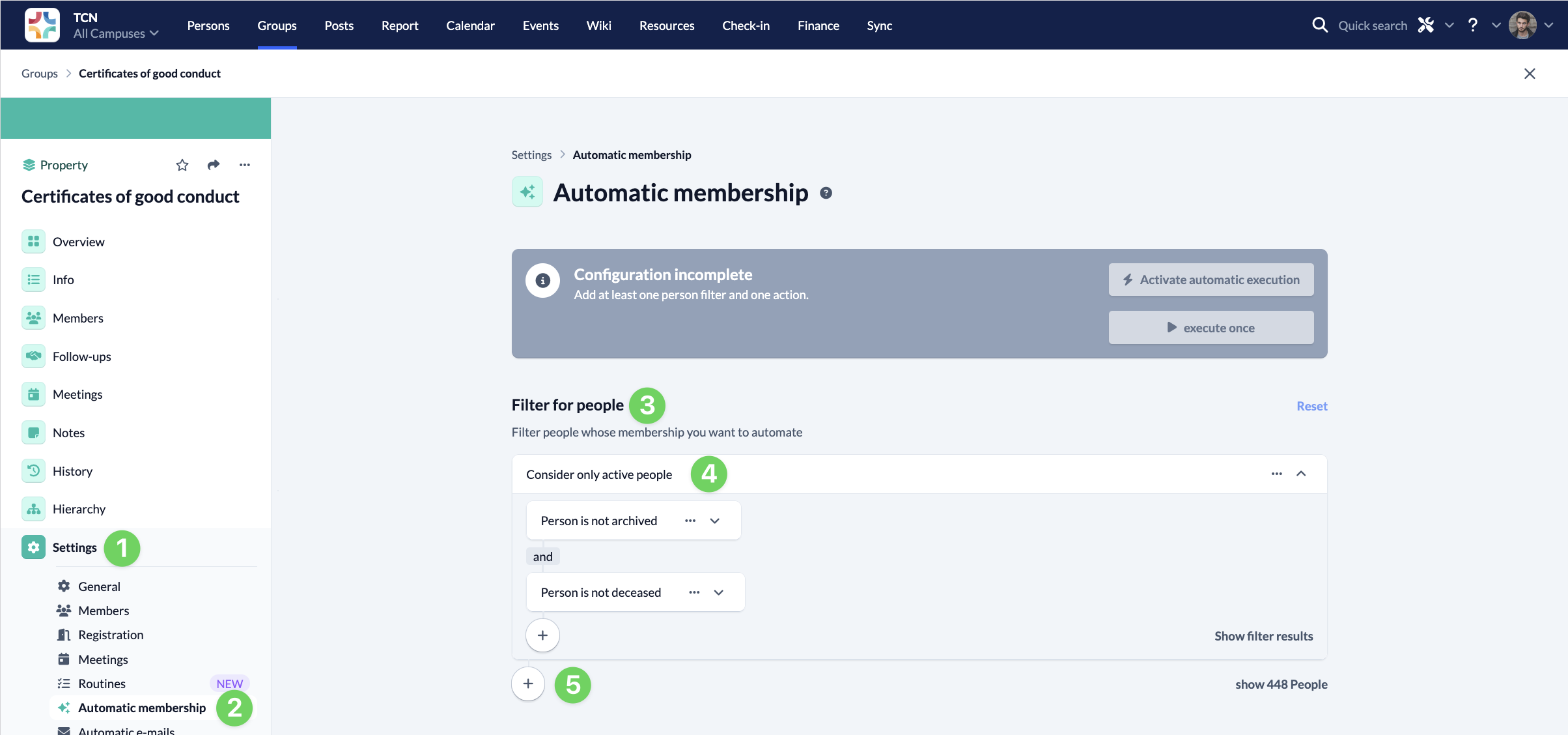 In this tutorial, you will learn how to add leaders or employees of groups for which a certificate of good conduct has not yet been submitted to a “Certificates of good conduct” group using automatic memberships. In this group, you can then use routines to ensure that a certificate of good conduct is submitted for the first time and that automatic inquiries are made before it expires so that leaders or employees can apply for a new certificate of good conduct in good time and submit it to the person responsible. We explain exactly how to do this in this article. What we do not address here is how to do this for managers and employees whose certificate of good conduct has been available for a longer period of time.