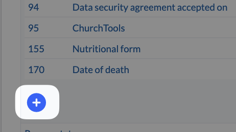 To add a new field, click on the blue plus sign at the end of the list of existing personal data fields.