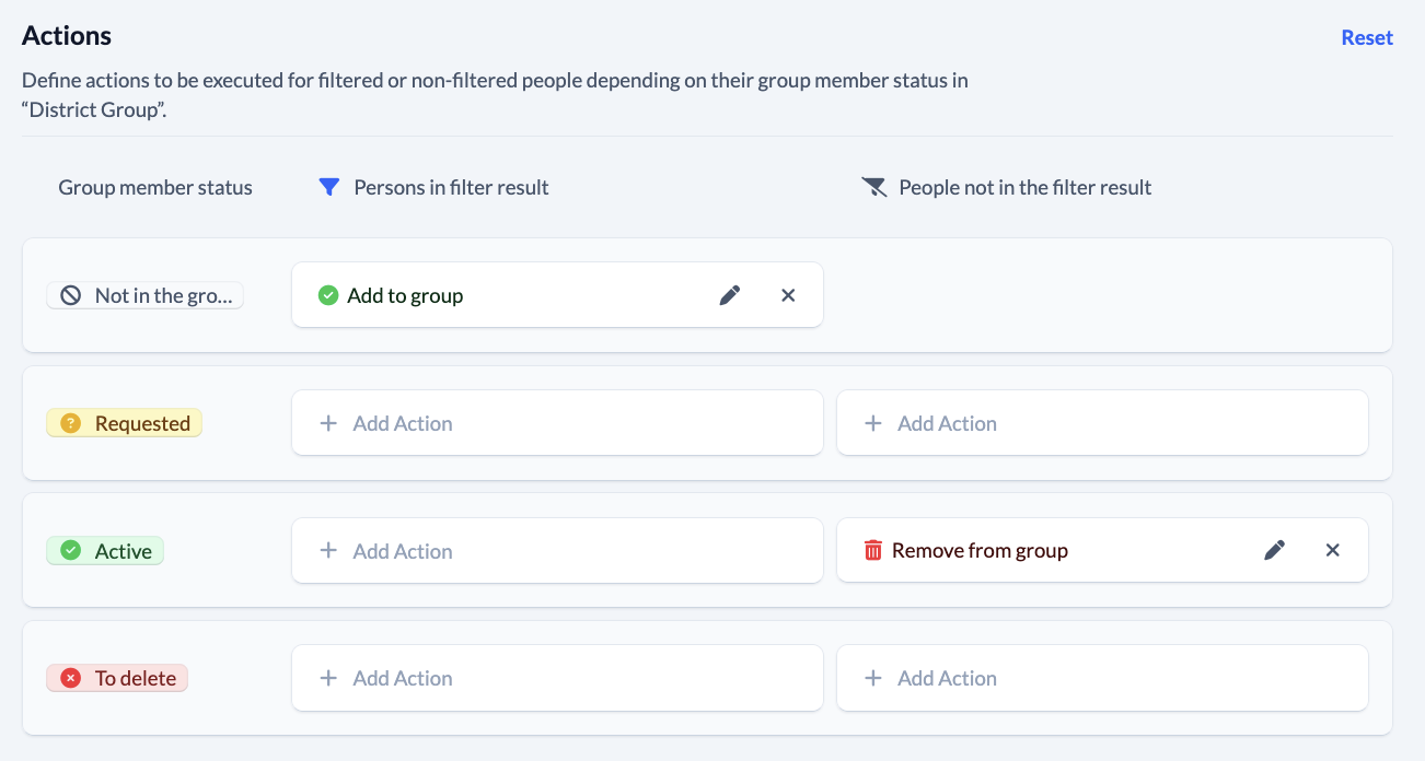 Groups - Settings - Automatic membership - Actions