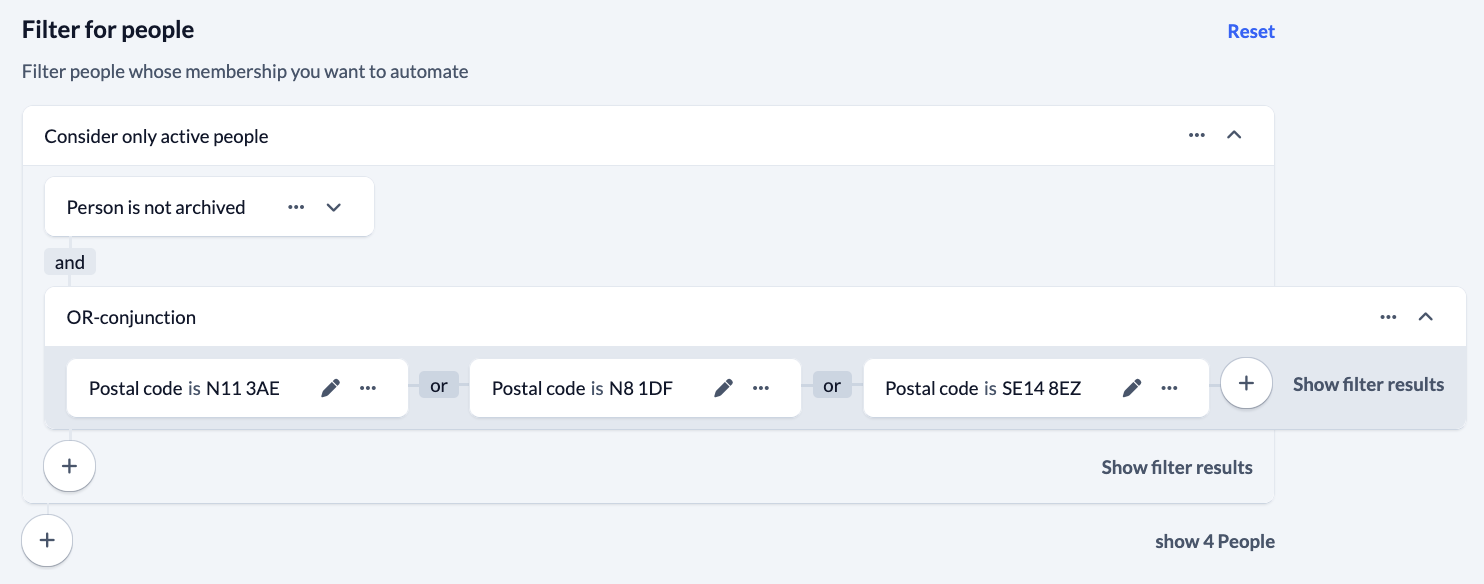 Groups - Settings - Automatic membership - Filter fpr people