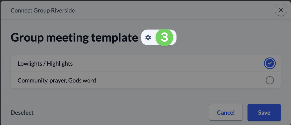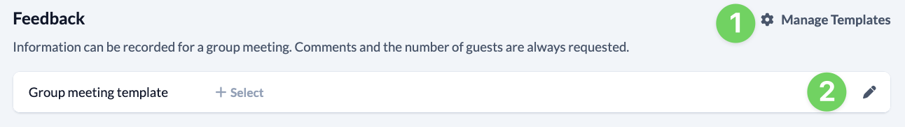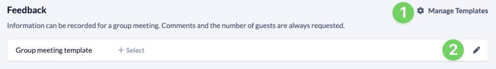You can edit the templates for your group meetings by clicking on the pencil (2) and then clicking on the gear symbol (3).