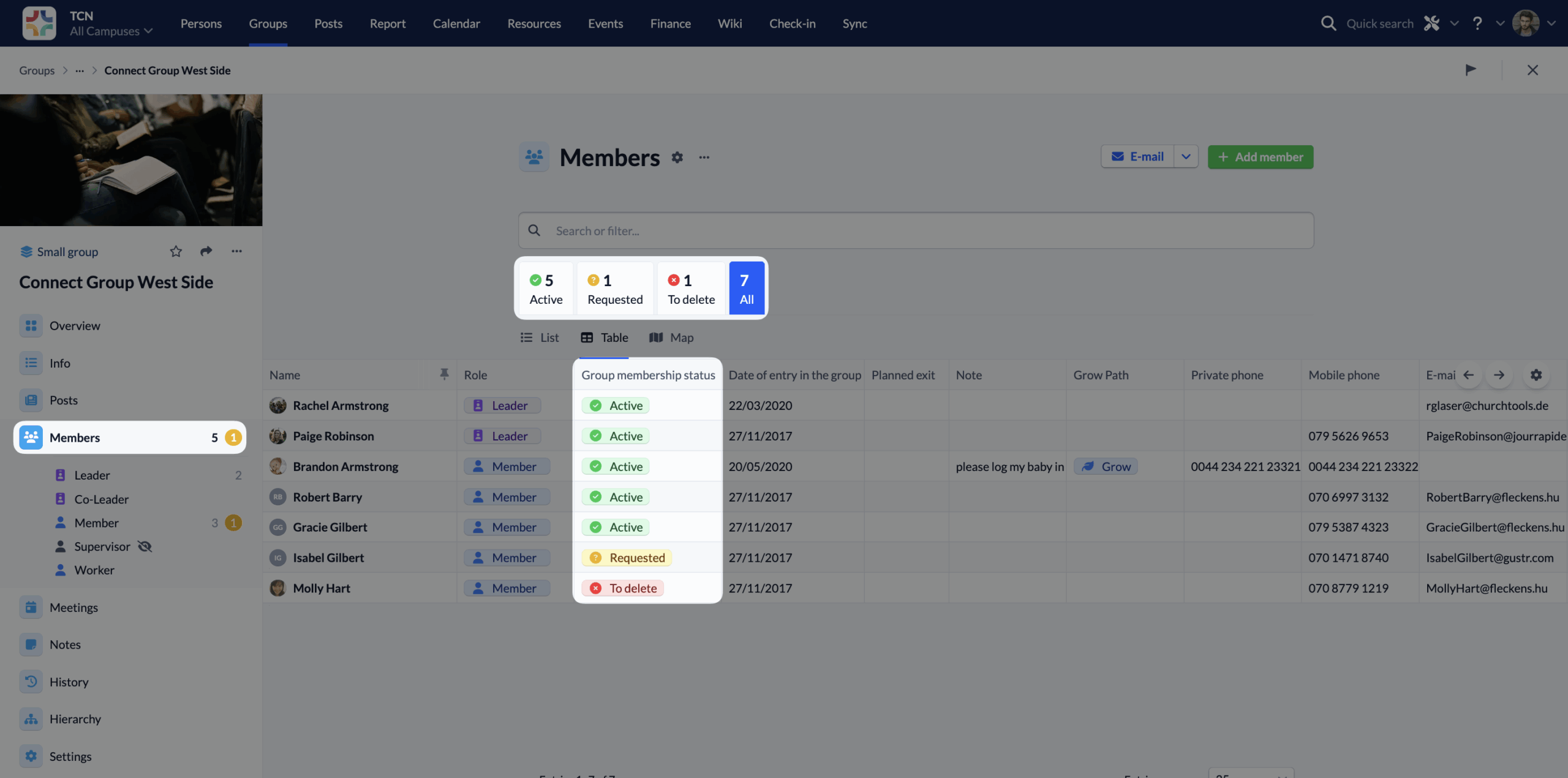In ChurchTools, group members can not only have different roles, but also three different statuses.