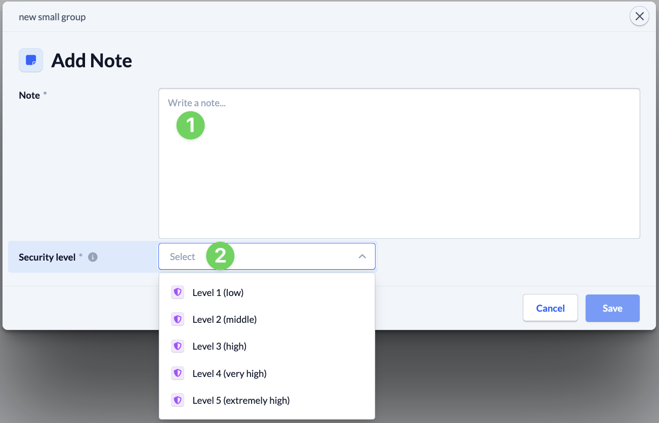 Then (1) write your note and select for which security level (2) a person must be permitted to see the note.