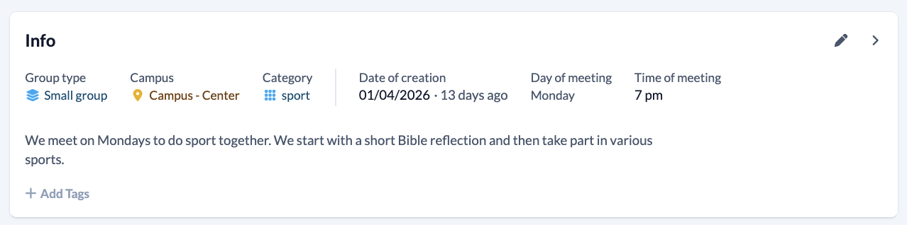 You can keep a record of who was there and who wasn’t at each group meeting. This way, you’ll quickly notice if a group member hasn’t been there for a while and can follow up on them. You can either record this here in the group, via the Check-in module or, of course, most quickly in the app.