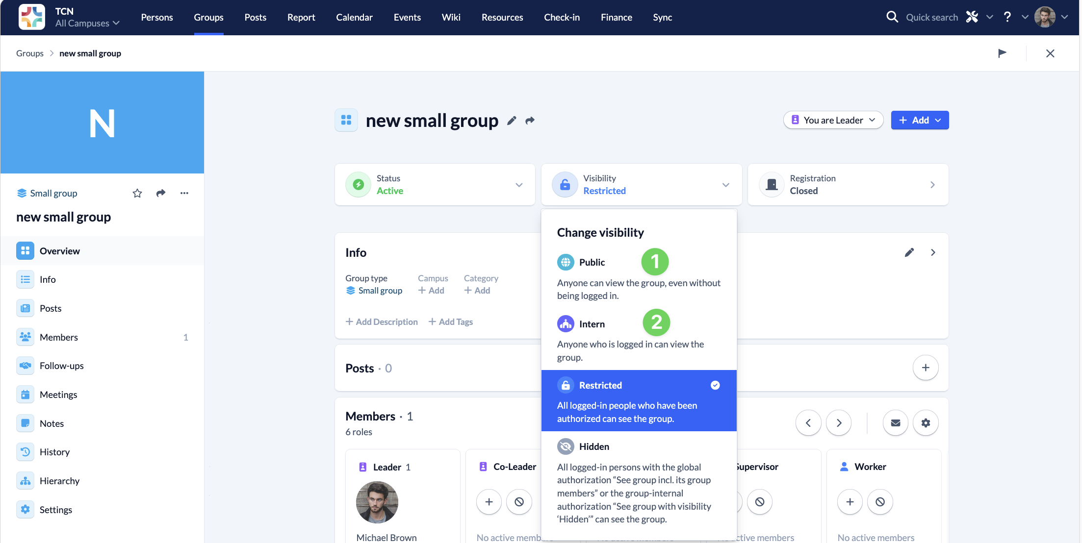 Otherwise you set Internal (2). This makes sense, for example, if you have a small group with a specific group of people or if the registration for the small groups in your congregation is handled by a central office.