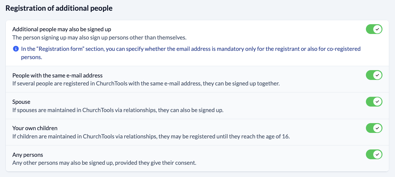If you want to allow people who sign up to your group to also sign up other people, activate this function and then specify below which other people may also be signed up.