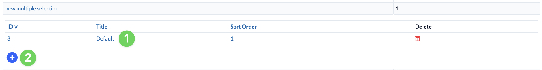 If you open the new master data entry, the first selection option Standard (1) is already created. You can customize this for your use case by clicking on it. You can create further selection options using the blue plus symbol (2).