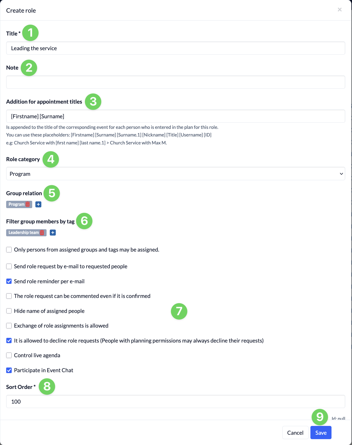 - Use the sorting (8) to determine where the Roles should be displayed.