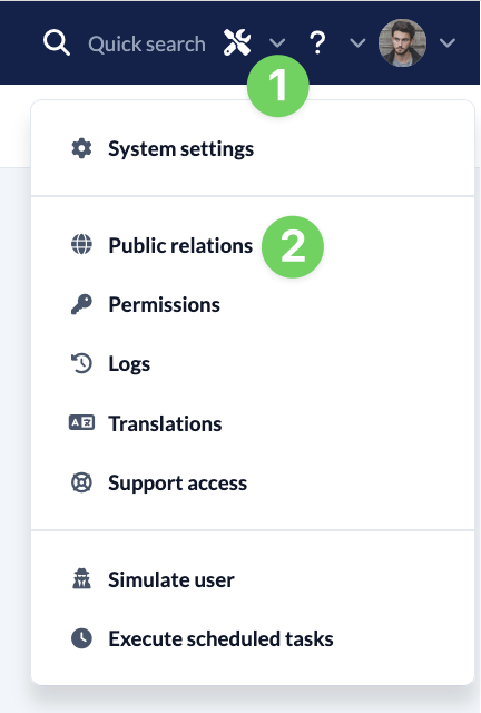 Use the Manage menu(1) in the blue menu bar to call up Public Relations (2). Here you will find the Verify and publish button (4) in your community profile (3). Click on it to start the process.